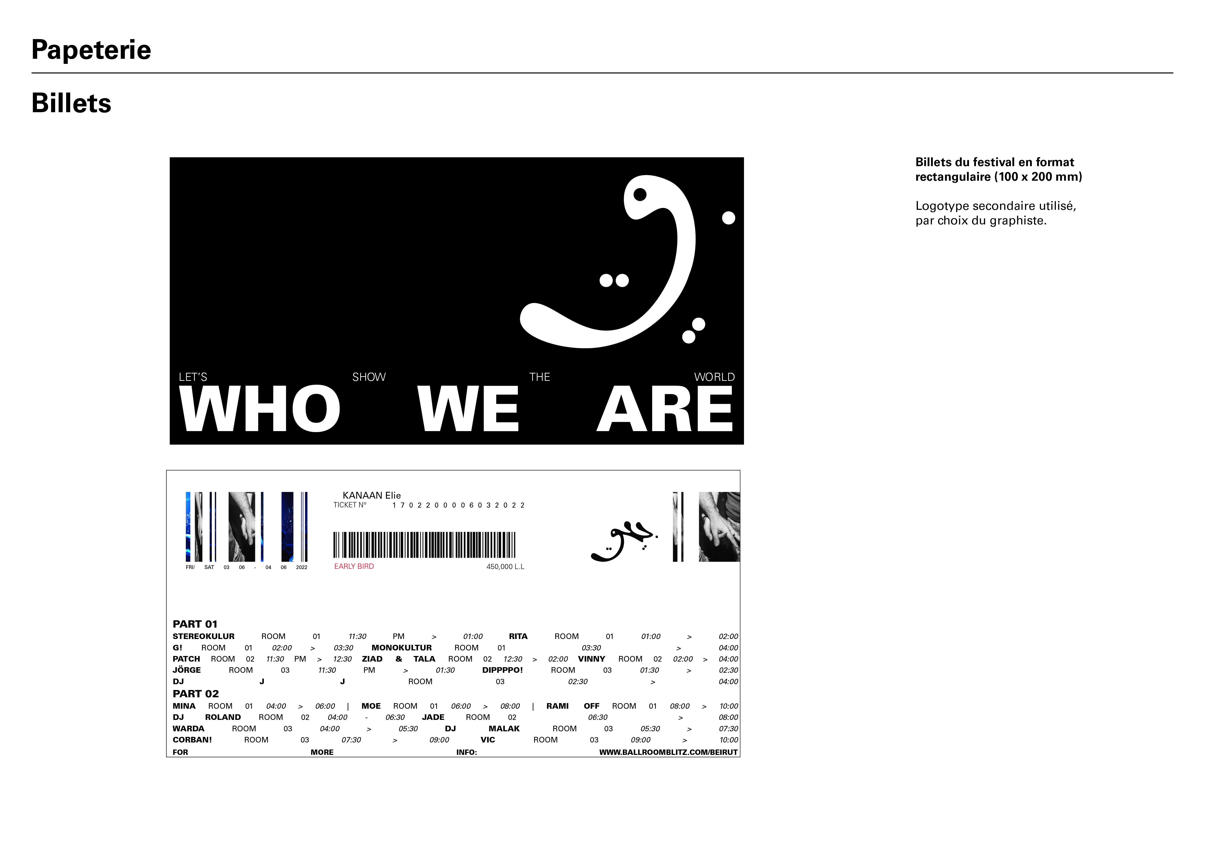 Portraying Beirut's unique identity through a visual representation of its people and one of a kind night life. In this project, I wanted to focus on what makes this city stand out: the union of Beirutis regardless of their differences. A mixture of barcodes, DNA, signatures, spit... elements that are unique and used to differenciate one person, object from another were the main inspirations to this brand identity. This project was worded in French.